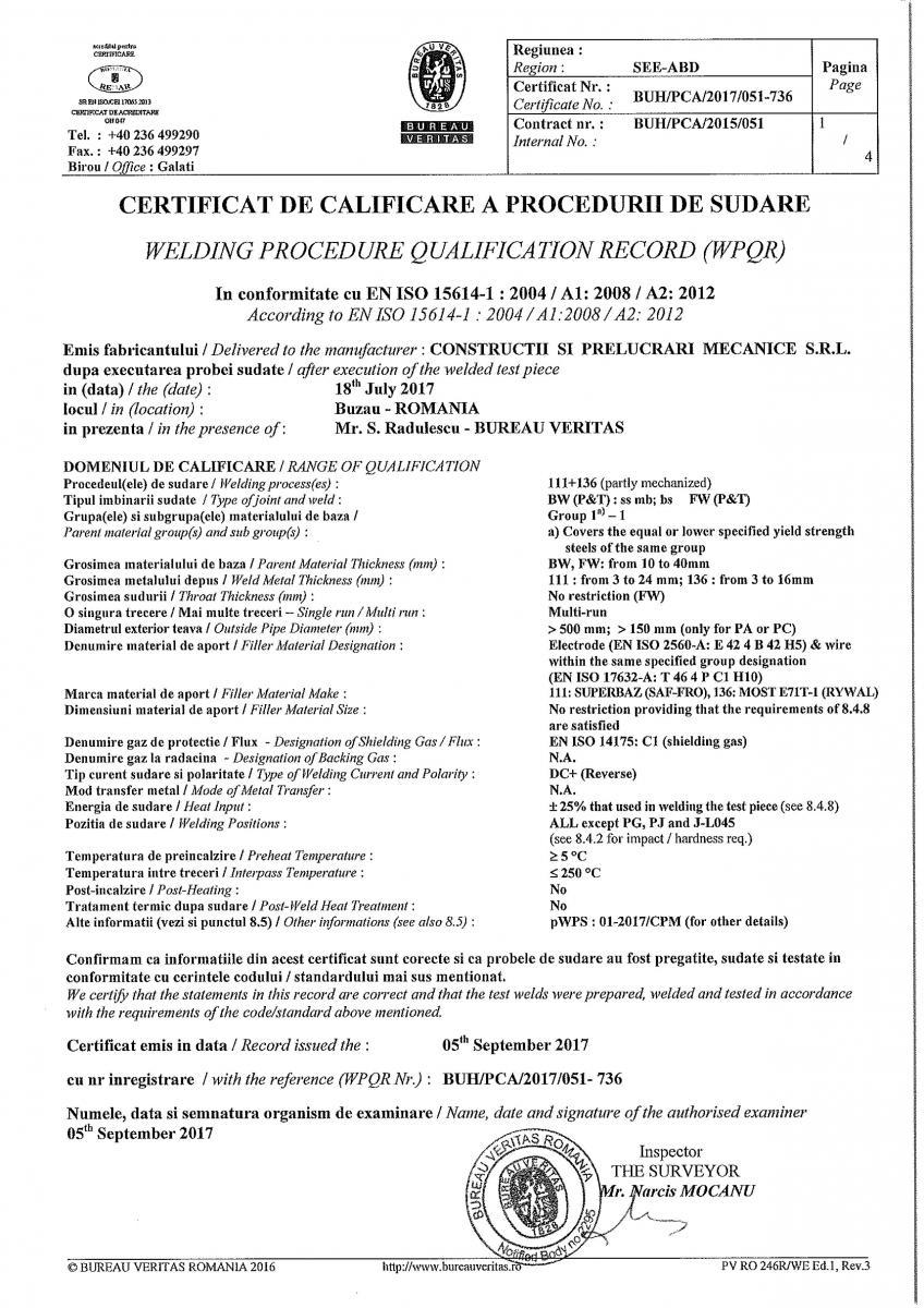 Certificate de Calificare a Procedeelor de Sudare